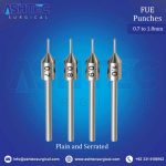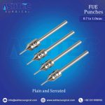 The FUE Punch Plain (0.8mm Dia, 4mm Tip) is expertly crafted for Follicular Unit Extraction (FUE) procedures, providing exceptional sharpness, control, and accuracy for seamless graft harvesting.